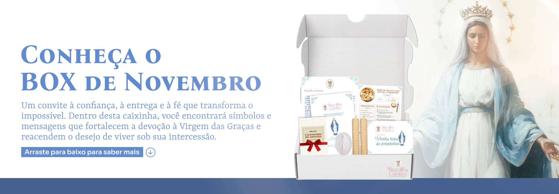 A beleza da fé que ilumina a vida cotidiana. O Mini Box Católico nasceu a partir da frase de Santa Teresa D'Ávila "Entre as panelas também anda o Senhor" e esta é a essência da nossa missão: ajudar mulheres católicas a encontrar a melhor forma de servir a Deus e a sua família transformando o ordinário do seu cotidiano em pequenos e extraordinários atos de amor.